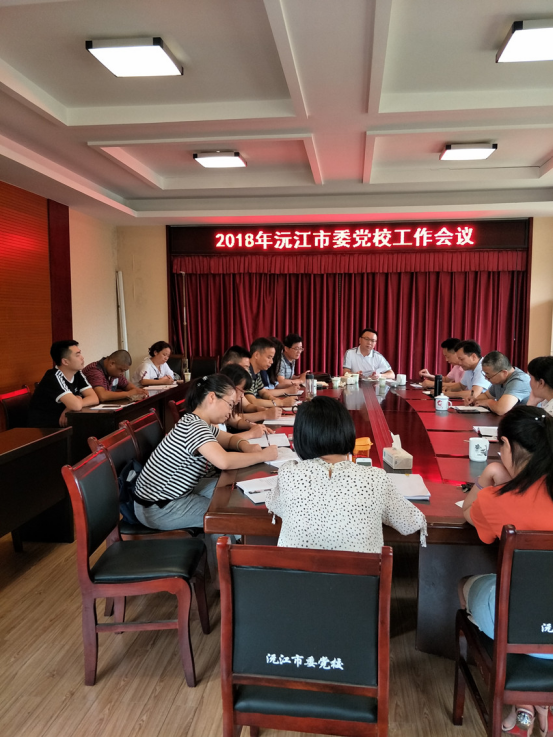 沅江党校校委会成员及全体干部教师职工参加了会议。