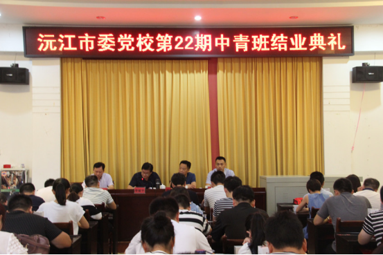 6月6日,沅江市第22期中青班在市委党校举行结业典礼。市委组织部副部长李献宇出席并讲话。市委党校副校长陈学文主持结业典礼。市委党校常务副校长何可仁、市直机关工委副书记陈楠、市委党校教职员工和中青班全体学员参加。