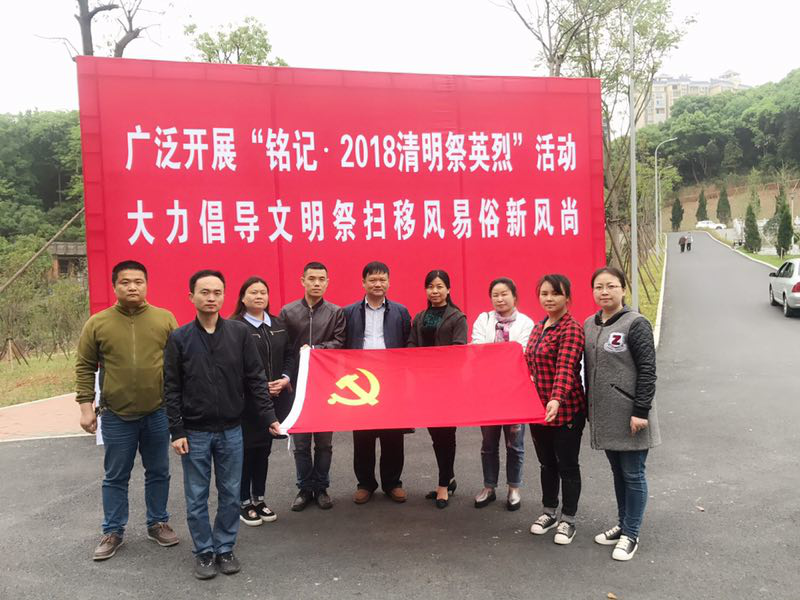 来到烈士纪念碑前,大家整齐列队,肃立默哀,并深深鞠躬。大家一一走向纪念碑敬献花篮和鲜花,用简朴庄重的礼节,向革命先烈致以崇高的敬意。与此同时,在局长万红桃同志的带领下,参加祭扫的党员干部庄严地举起了右手,面向鲜红的党旗和高耸的纪念碑,重温了入党誓词。