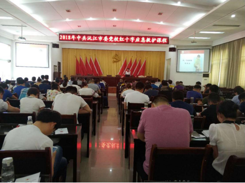为进一步增强公职人员应急救护意识,使他们掌握自救、互救和科学施救的技能,2018年5月16日,沅江市红十字会特邀益阳市红十字会副会长、中国红十字会业务工作培训老师周玲女士专程来到沅江市委党校,为市委党校第22届青干班和科干班的120多名学员开展红十字应急救护普及培训。